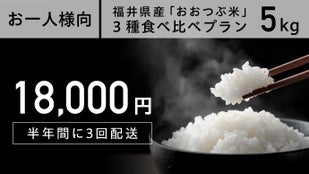 《お一人様向》福井県産「おおつぶ米」3種食べ比べプラン5kg《半年間に3回配送》