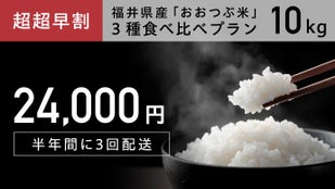 【超超早割】福井県産「おおつぶ米」3種食べ比べプラン10kg《半年間に3回配送》