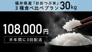 福井県産「おおつぶ米」3種食べ比べプラン30kg《半年間に3回配送》