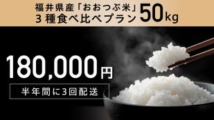 福井県産「おおつぶ米」3種食べ比べプラン50kg《半年間に3回配送》