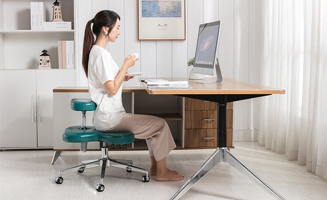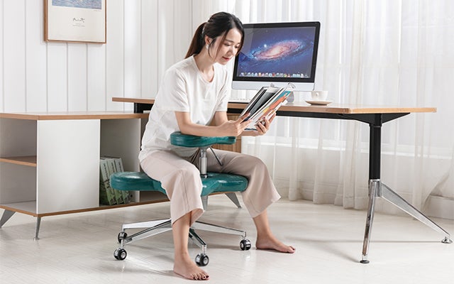 従来のオフィスチェアと違い、作業や会話中に片膝、横座り、正座、あぐらなど様々な座り姿勢が楽しめます。