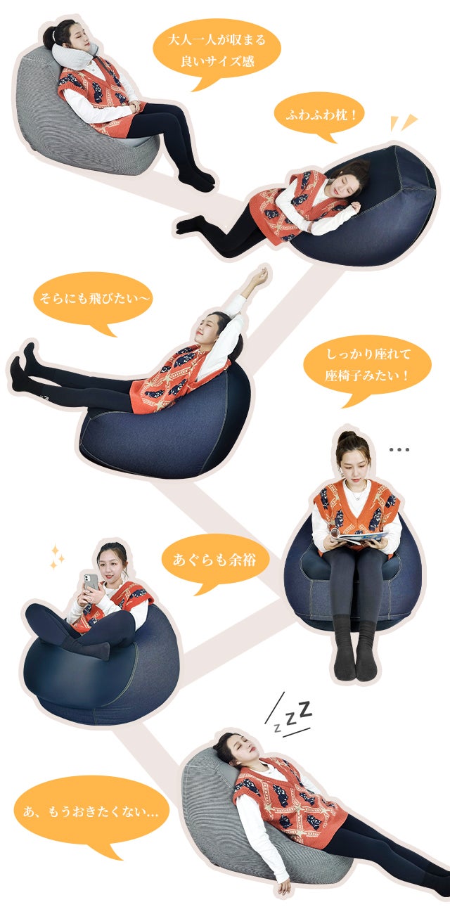 今度は、座り方を自由自在に変更できるよう特別開発されたビーズクッションを、是非ご検討のほどよろしくお願いします。