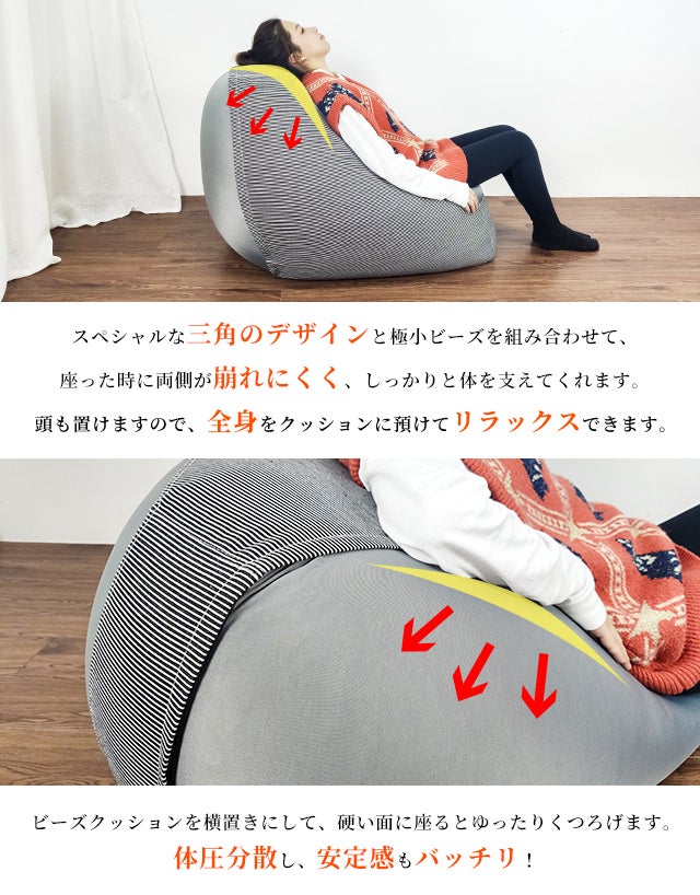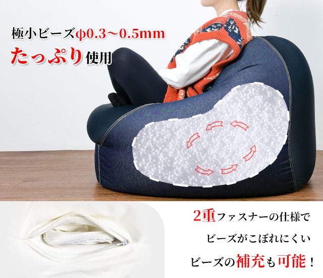 - 極小ビーズ(0.3-0.5mm)をたっぷり使用!ヘタリにくく、しっかりと体をサポートします