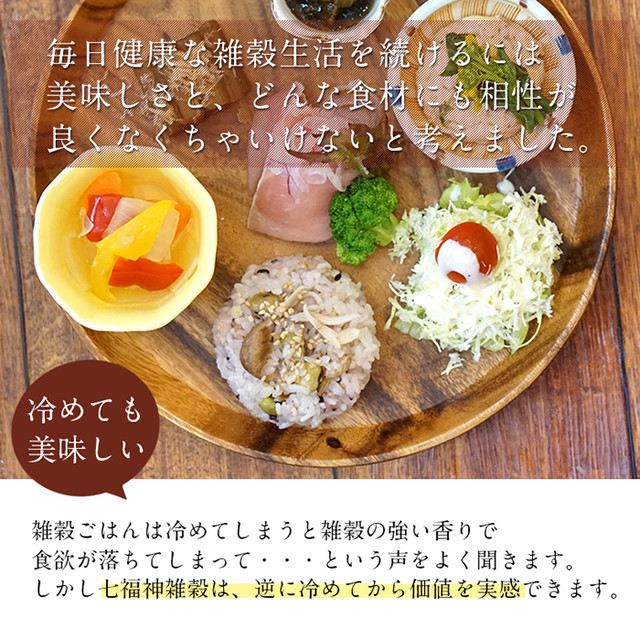 ・もう一つは青森県の素材を生かした美味しく健康に良い七福神雑穀も2合炊き10回分も3袋お付けします。津軽在来種の毛豆(緑豆)、青森県産乾燥まいたけなど配合し栄養価だけでない「美味しい雑穀」を楽しみ下さい!
