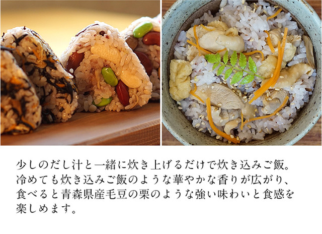 この青森県津軽地方の在来種「毛豆」(緑豆)ですが、炊き上がるとまるで栗のような豊かな甘みを感じることが出来ます。