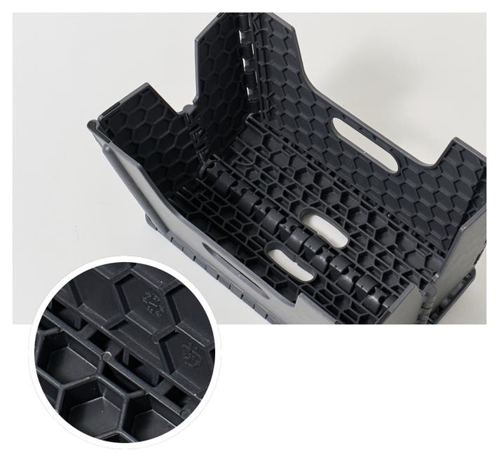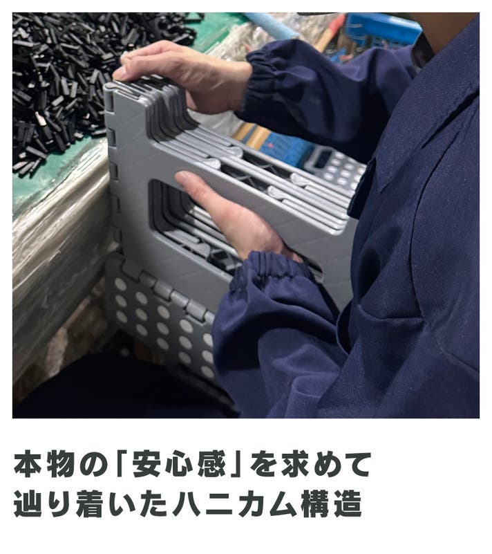 プラスチックの厚みを増やせば、折りたたみ式ならではのコンパクトさがなくなり、プラスチック素材に強化加工を施せば、製造コストは大きく膨れ上がります。