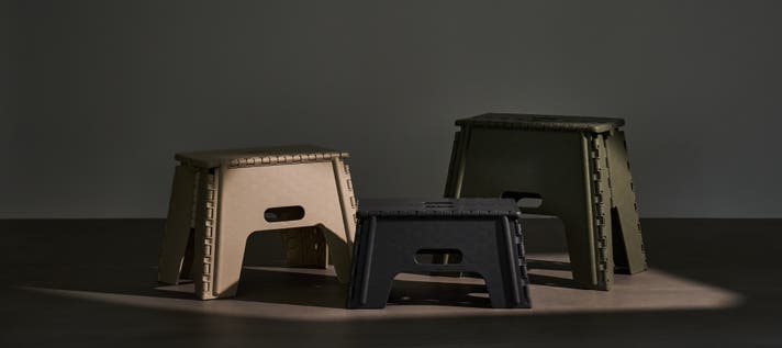 弊社では、約20年前から「プラスチック製折りたたみ踏み台」の開発・生産を開始。開発段階で生み出した特許製法により、大手企業のOEM製造を中心に日本市場の大きなシェアを獲得して参りました。