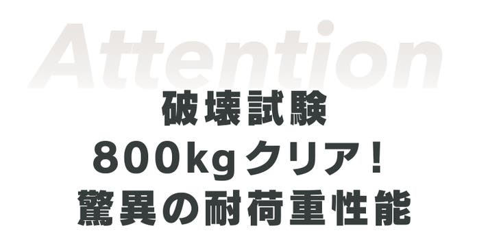 その結果、第三者機関による破壊試験で、800kgを超える驚きの強度(耐荷重[全体静荷重]400kg)を実現することに成功しました。