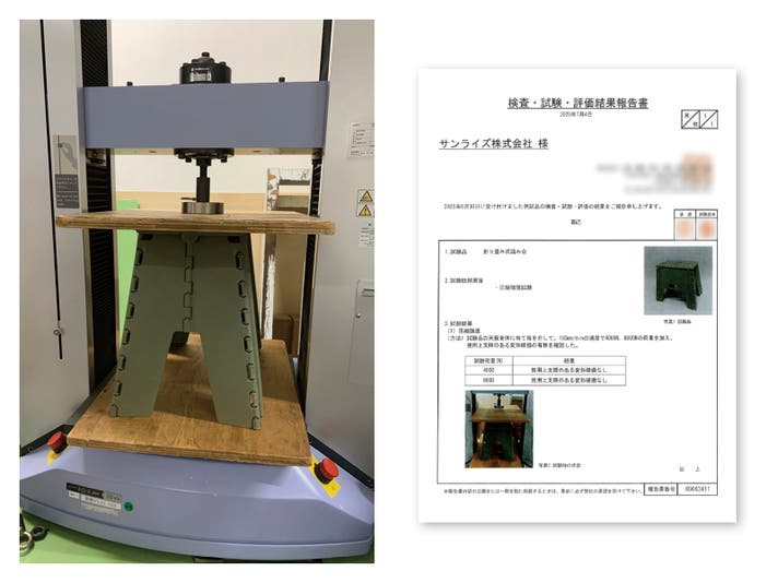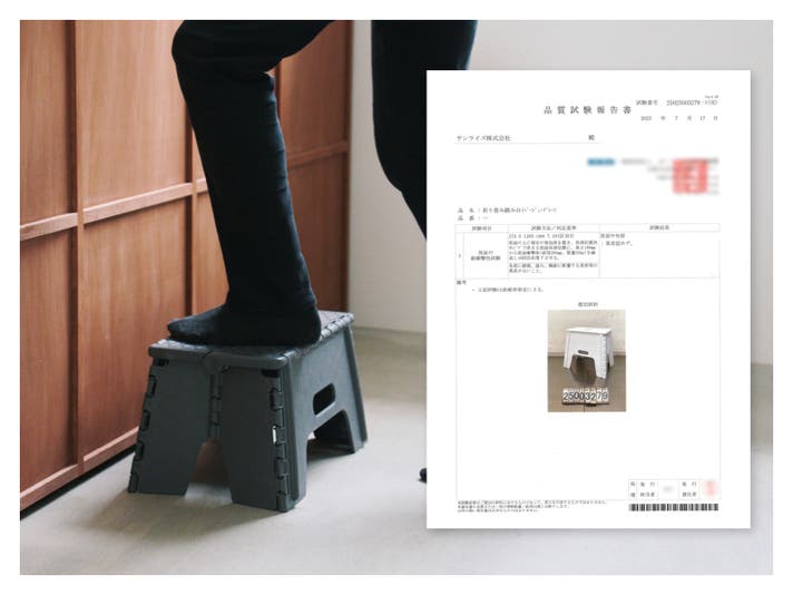 SUNRISEの折りたたみ踏み台では、その「昇り降り」を想定したJIS規格の「椅子・スツール」の繰り返し耐久テストにも合格しました。
