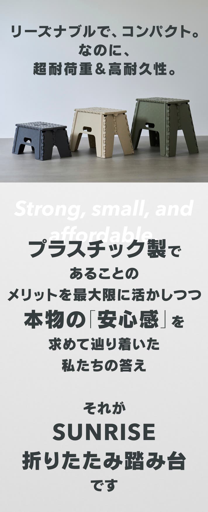 もちろん、採用しているプラスチック素材は、一般的な折りたたみ式の踏み台と同じもの。鋼鉄素材でもなければ特殊な高強度素材を配合しているわけでもありません。