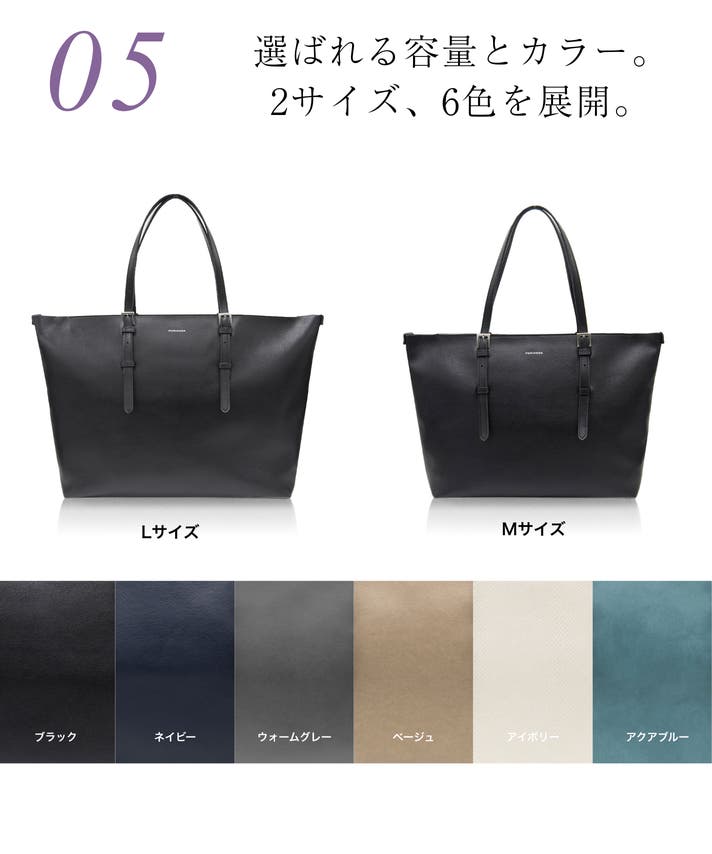ビジネスにはもちろん、ショッピングやレジャーなどあらゆるシーンでお使いいただけるトートバッグ「ALEX」はFUMIKODAで一番人気の軽量トートバッグです。