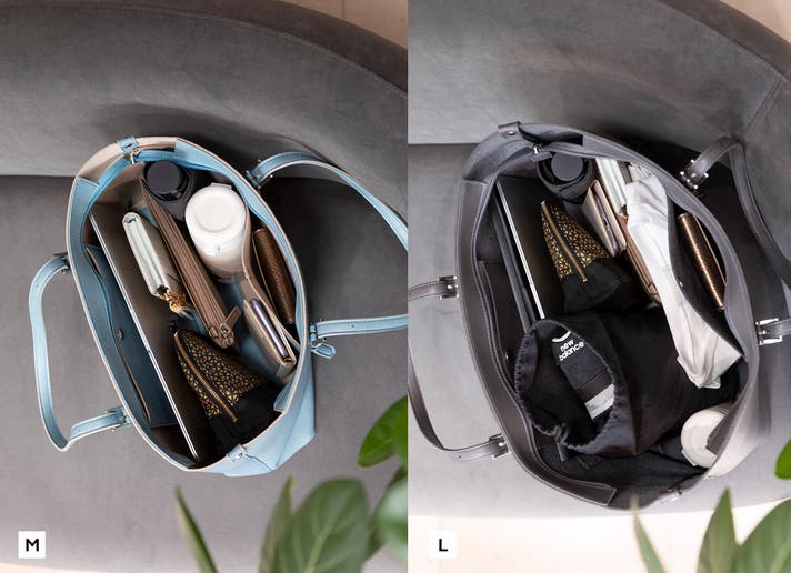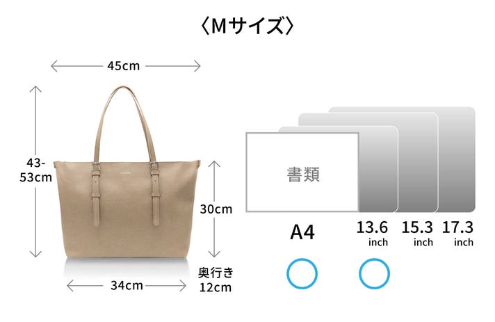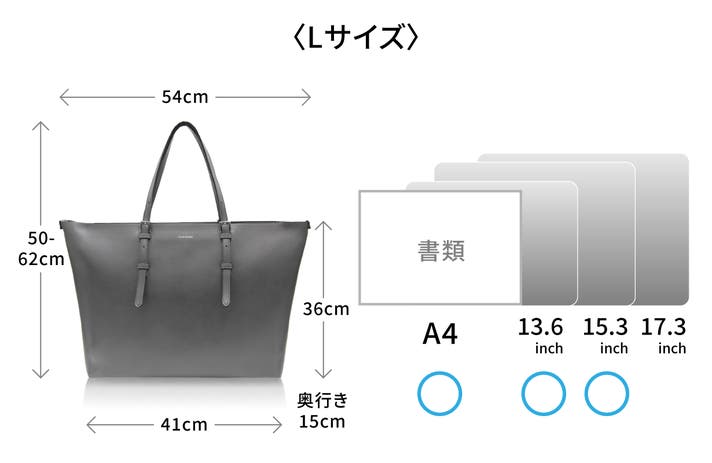 持ち物やスタイルに合わせて選べるM、Lサイズの2サイズ。