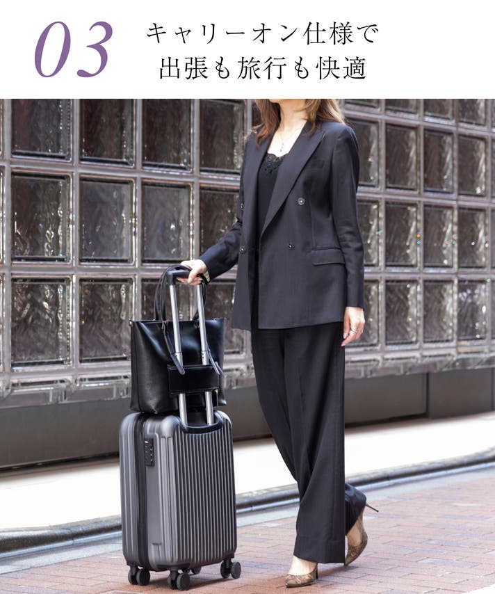 - 【出張や旅行に】要望が多かった「キャリーオン」&「背面ポケット」を採用