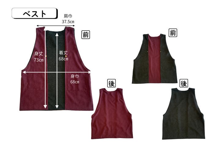 完成した商品(アウター1点+ベスト1点)