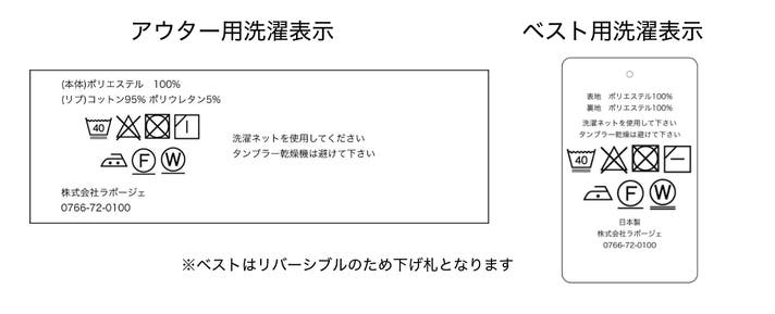 A.はい。可能です。表地・ベストともにポリエステルのイージーケア素材ですので、ご家庭でのお洗濯が可能です。(洗濯ネットの使用を推奨します。タンブラー乾燥機のご利用はお控えください。)