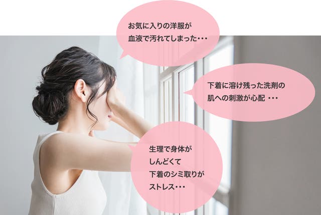- 多くの女性の悩み「生理の血液シミ」が簡単に取れる!