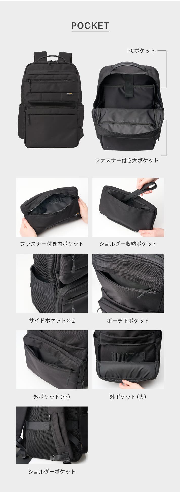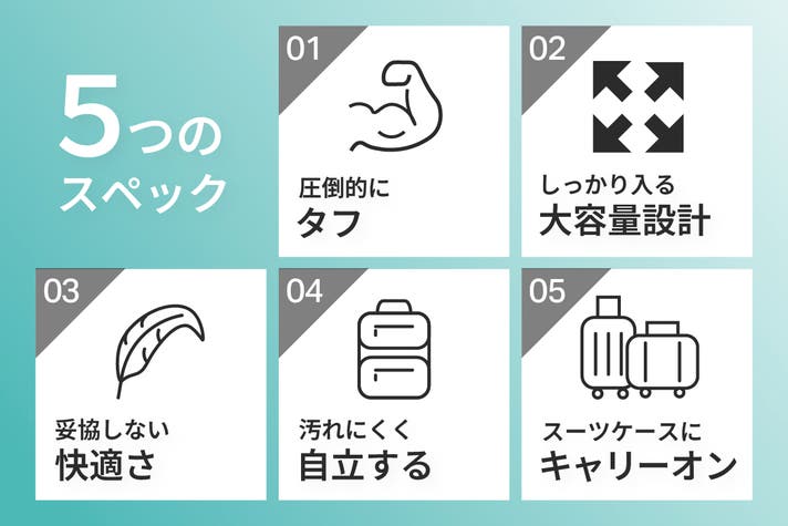 - 快適性やキャリーオン機能など、細部まで徹底して機能的なデザイン。