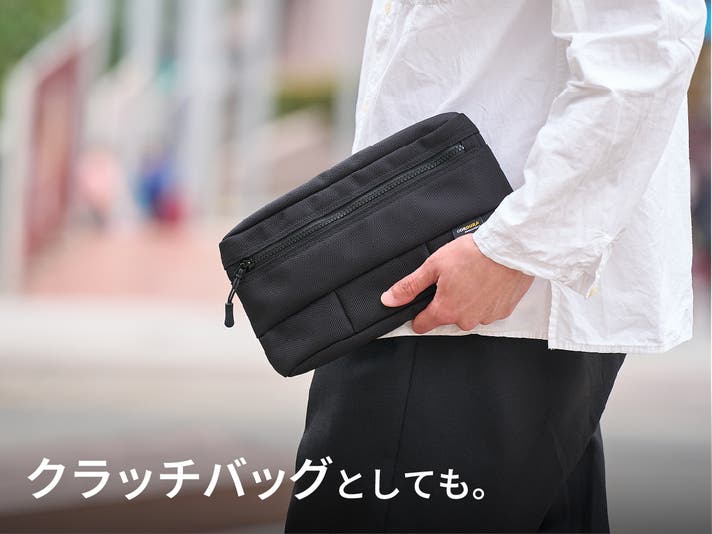 クラッチバッグとして使用すれば「ちょっとそこまで」な用事にもぴったり。