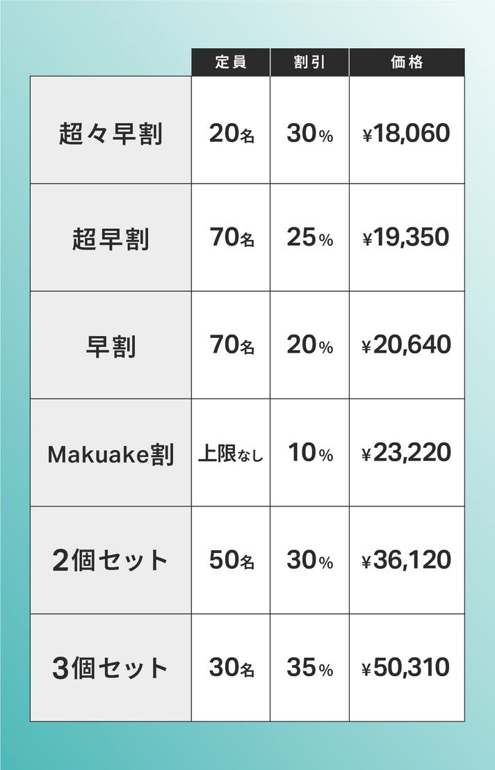 一般販売予定価格:25,800円から30%OFF