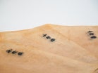 雁皮紙(がんぴし)を灰汁や柿渋などに没けて仕込んだ箔打紙を用いて、金箔を打ち延ばします。 延ばし終えた金箔は正方形に整えるために、竹製の道具を用い、一枚一枚、規定の大きさに裁断します。