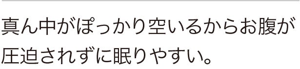 真ん中が空いた形状にしたことによりお腹を圧迫せず、普段仰向けで寝てる人でもスムーズにうつぶせ寝ができるようになりました。