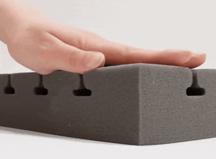 体のラインにピタッとフィットする高精度カッティング技術で、高反発ウレタンを3次元構造にカット。360°全方向に自由に動くセルが体をしっかりと支えます。
