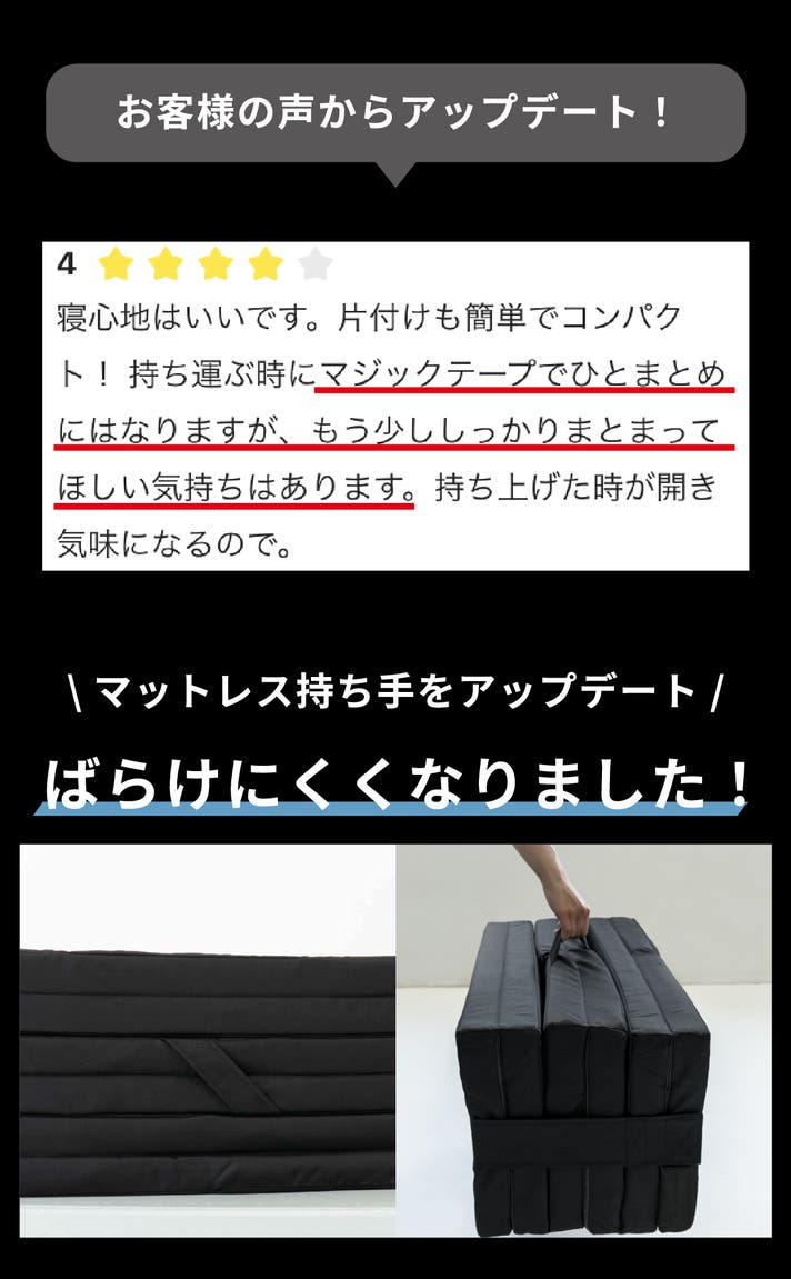 マットレスの持ち手の位置や仕様を見直し、持ち上げた時のマットレスがばらつきにくくなりました。