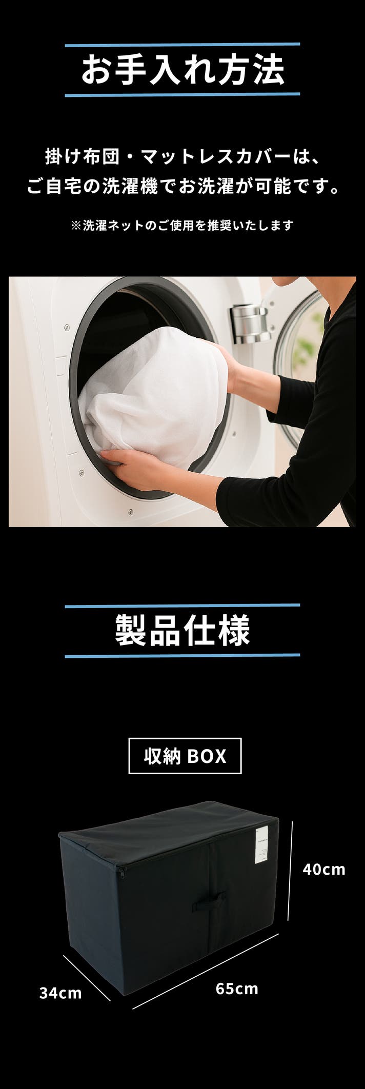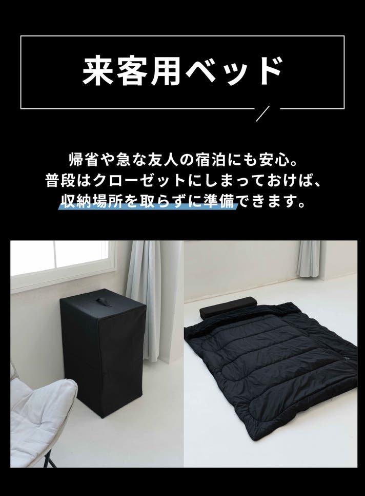 使わない時はコンパクトに収まり、省スペース。来客用布団としてすぐに用意できるので、突然のお泊まりでも「あってよかった」をご提供いたします!