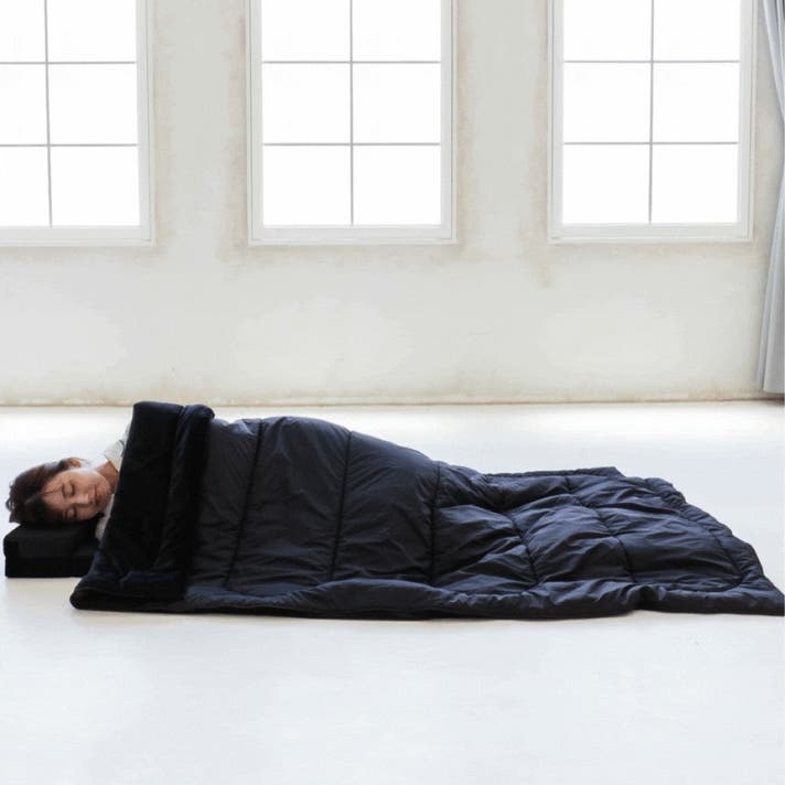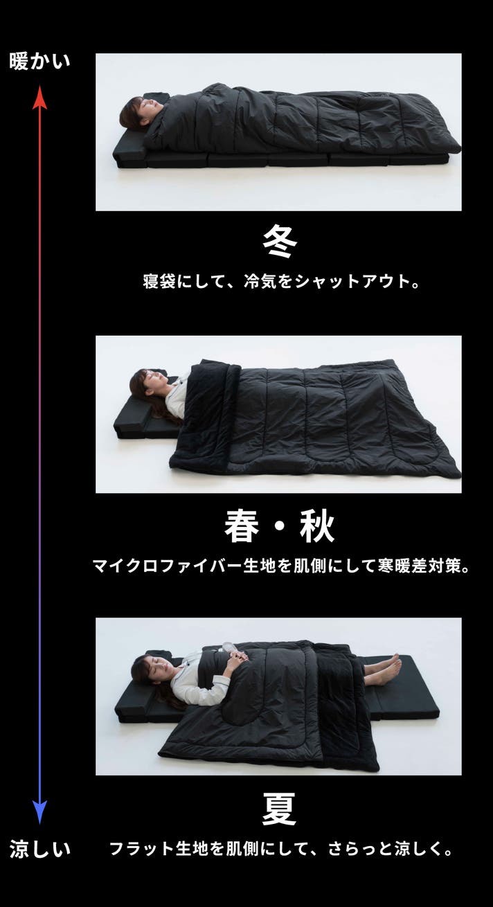 リバーシブル生地で寝袋にもなる掛け布団で、一年中快適です。