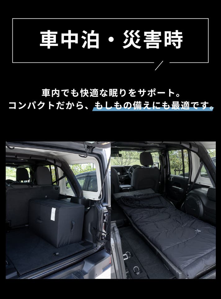 さらに、収納BOXはスリムに折りたたむことができるので、隙間にスッと収納することも可能です。車中泊の際にも役立ちます!