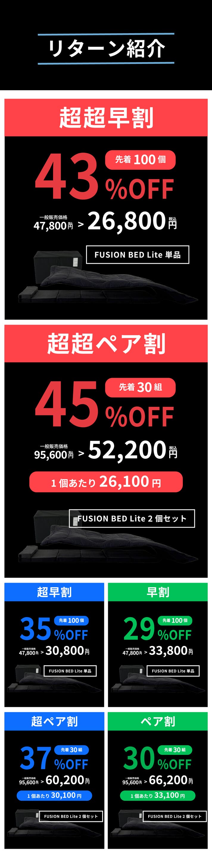 【超超ペア割】FUSION BED Lite2個セット 45%OFF 先着30組