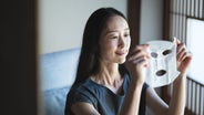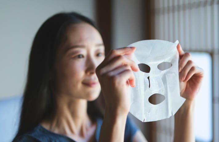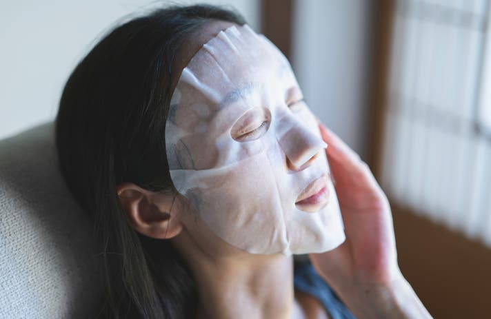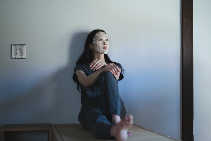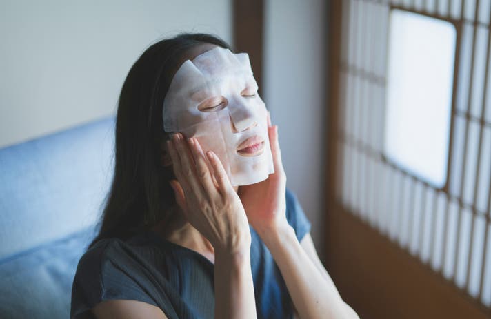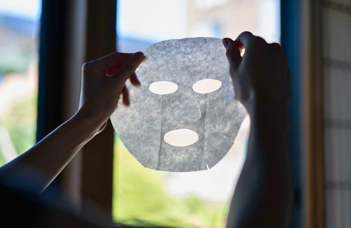 仕事帰りの疲れが顔ににじむ夜。バスルームでマスクを広げ肌に載せると、がんばった自分をいたわる時間。