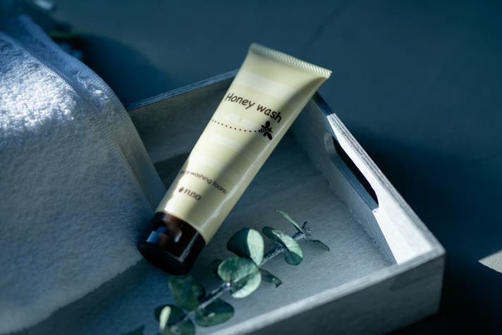 洗顔フォームははちみつ入りでしっとりとした洗い上がり。ご自身の潤いを大切に設計しています。