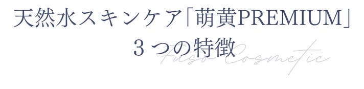 〈萌黄PREMIUM〉は、天然水スキンケアシリーズの化粧水です。