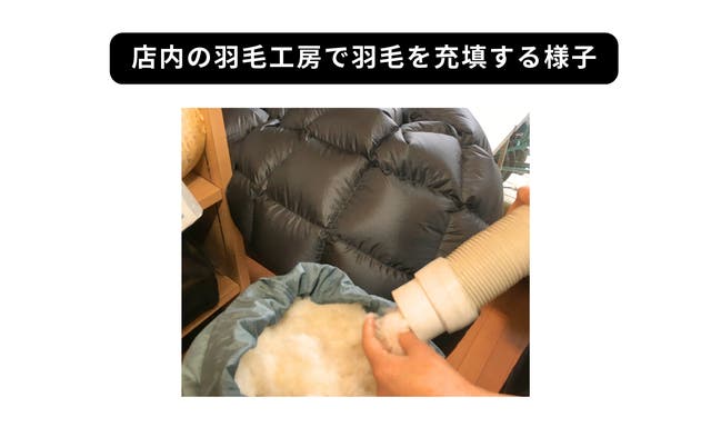 当店は、店頭で羽毛を充填しオーダーメイドする「羽毛工房」を32年間運営。