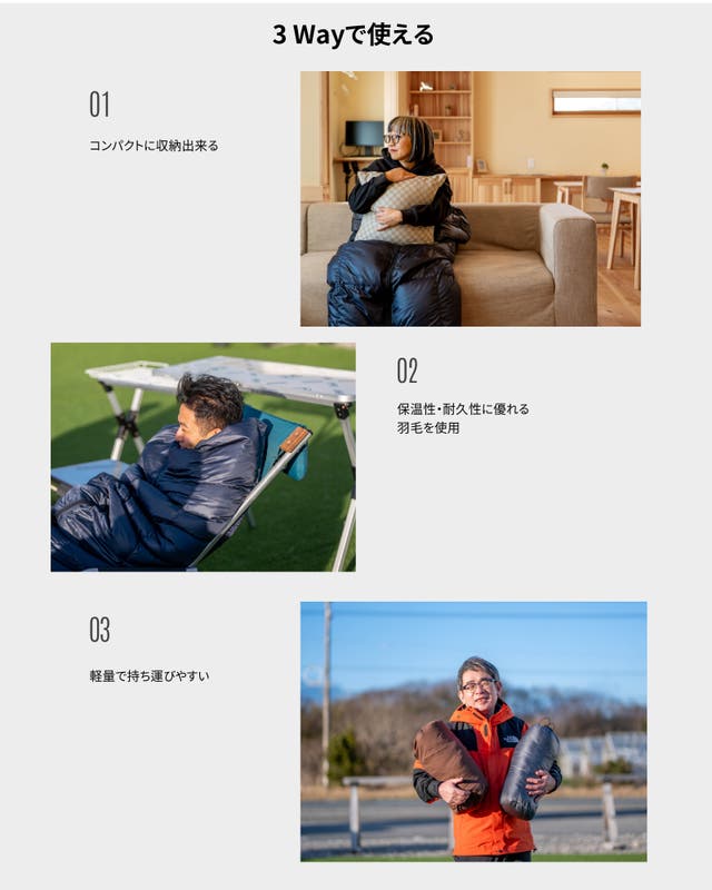 機能③. 暖かいだけじゃない。軽いから持ち運びが簡単