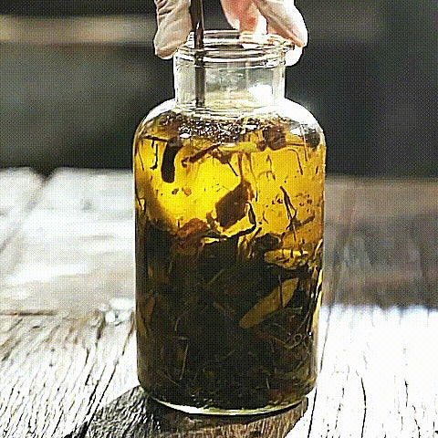 浸油してから1ヶ月程度が過ぎると、こんな濃い黒糖浸油オイルができます。