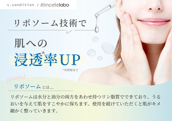 - リボソーム技術で高濃縮成分が肌の角質層まで浸透し効果を発揮