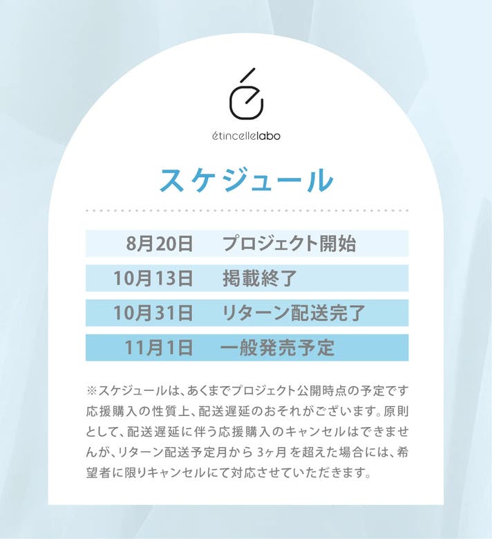 リターン品の配送が完了するまでfuture-claireエタンセルラボは、Doc Lab(メーカー)の日本における独占販売権を有する正規代理店です。詳細に関しては、ページ下部のリスク&チャレンジをご確認ください。