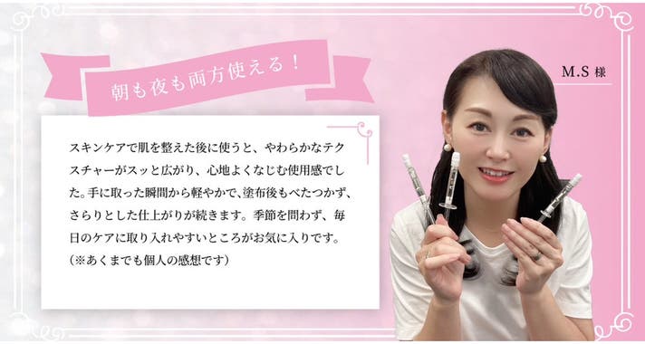とろみのあるテクスチャーが肌に素早く馴染み、さらっとした使用感です