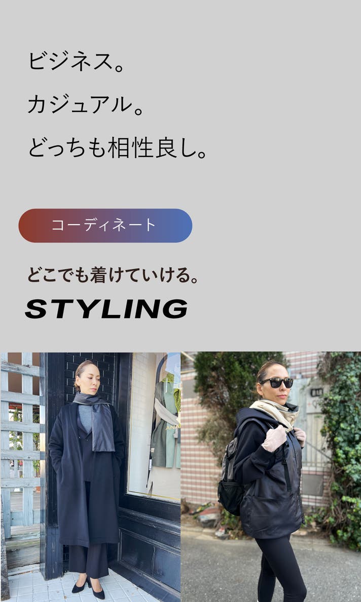 前で止めれば、ベストのように着用可能。前V開きコートの寒さ対策におすすめ。