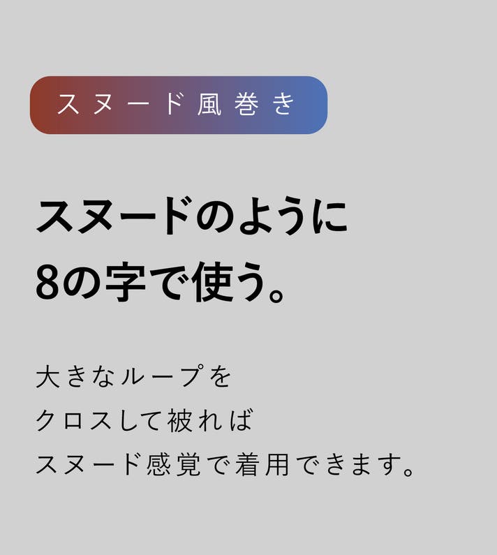 スヌードとは筒状のネックウォーマー。ループにしてスヌード風にすれば、雰囲気づくりも簡単に。