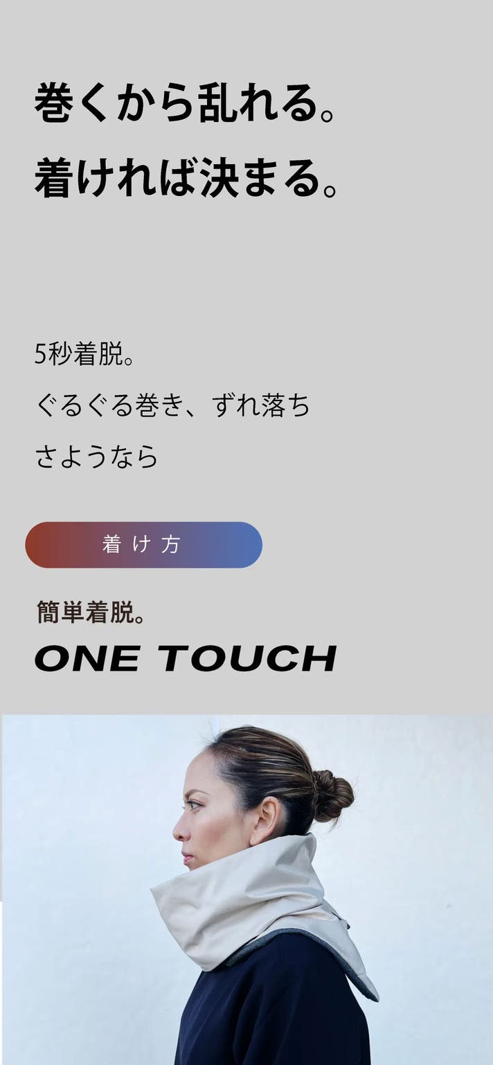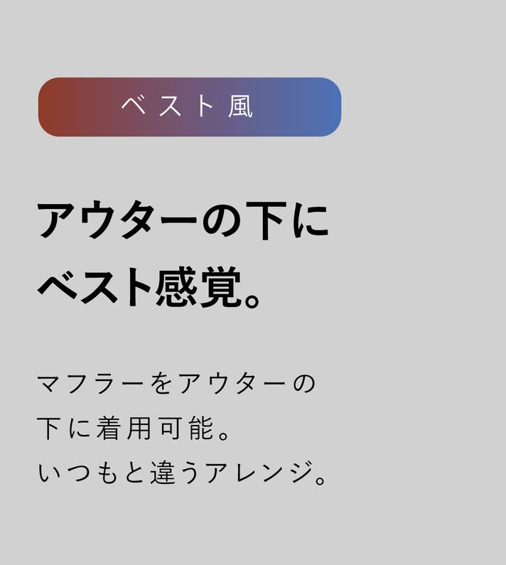 - 首に負担の掛かる「巻くマフラー」から 首にやさしい「着るマフラー」へ。