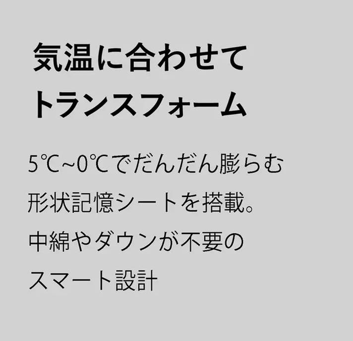 モコモコしない1mmダウン使用、オールインコートについて、詳しくはこちらのプロジェクトをご覧ください。