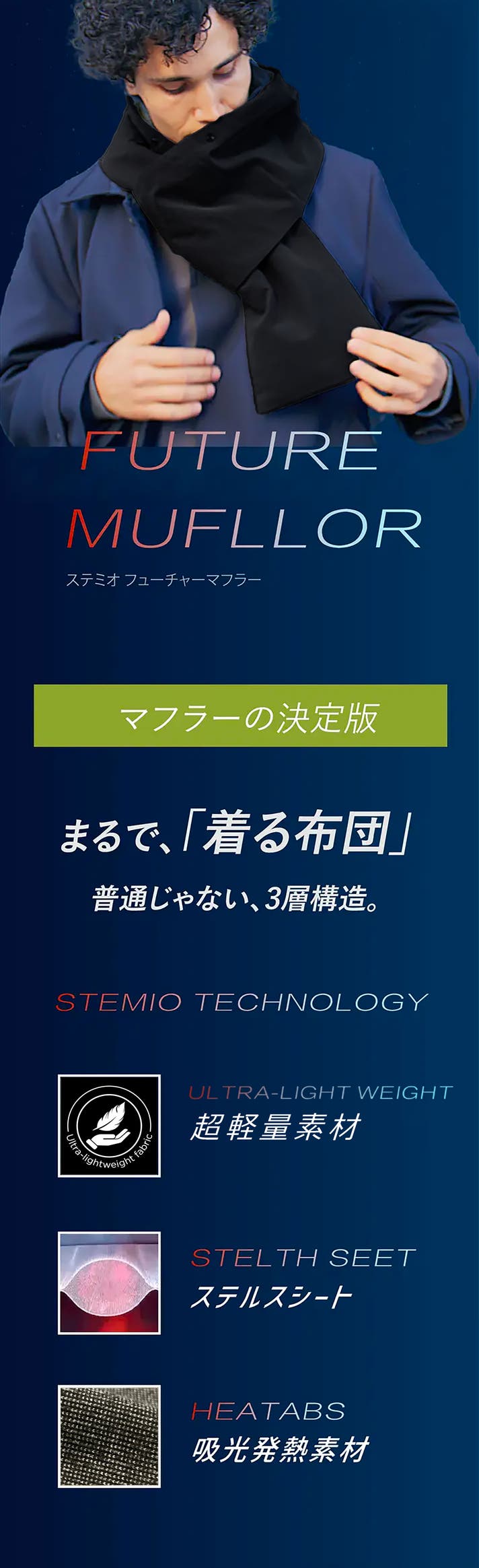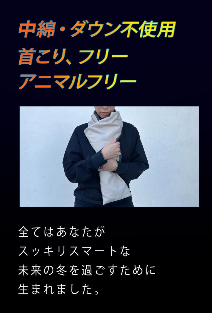 だからどんな構造が寒さに有効かを理解しています。更にフューチャーマフラーは実際に私が2年間の冬を着て試して完成しました。最初は5層構造でしたが電車内では暑くオーバースペックだったため、3層にしました。
