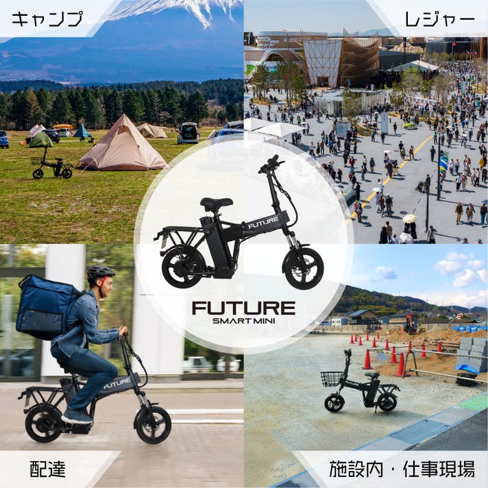 自転車での配達よりも圧倒的にラクで効率的!取り回しの重い配達バイクよりも小回りがきくコンパクト設計で、狭い路地もスイスイ。ミニだけどパワフルな「FUTURE SMART MINI」は、カテゴリー最高峰スペックが詰まった1台。デリバリーや業務シーンでも実用性を発揮します。