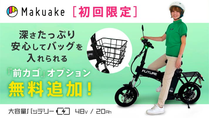 「Makuake(マクアケ)」は、実行者の想いを応援購入によって実現するアタラシイものやサービスのプラットフォームです。このページは、 テクノロジーカテゴリの 「【免許不要】すごい馬力のこがない自転車!高性能スペックの折りたたみ電動バイク」プロジェクト詳細ページです。