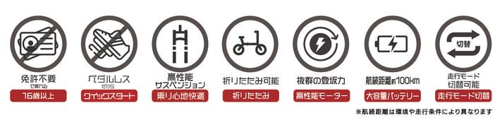 また、応援購入の発送に際しては、以下の条件を満たしていることを確認させていただきますので、あらかじめご了承ください。具体的には、ナンバープレートの取得、自動車損害賠償責任保険(自賠責)への加入、公的身分証明書による16歳以上であることの年齢確認が必要となります。なお、特定小型原動機付自転車に関する情報はマクアケからも発信しておりますので、ぜひ併せてご確認ください。