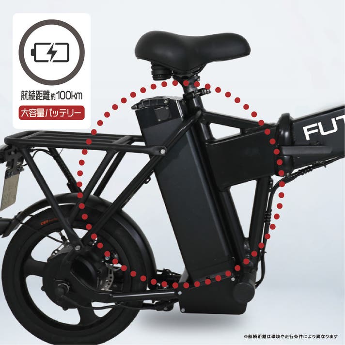 ⑥大容量バッテリー搭載で航続距離約100km!長距離移動も安心
