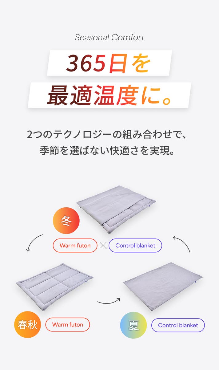 Warm Futon (ウォームフトン)×1枚、Control blanket(コントロールブランケット)×1枚のセットです。